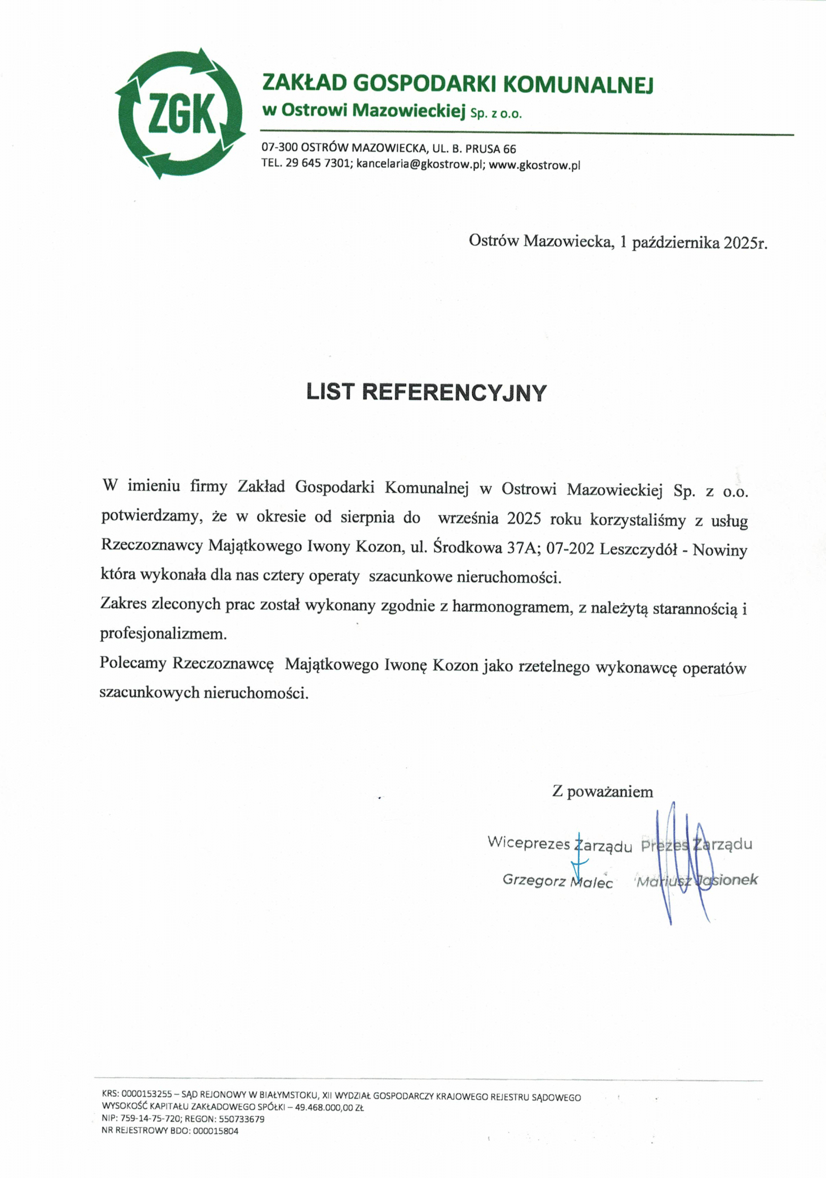 Jestem biegłym sadowym w zakresie szacowania nieruchomości i planowania przestrzennego przy Sądzie Okręgowym w Ostrołęce.