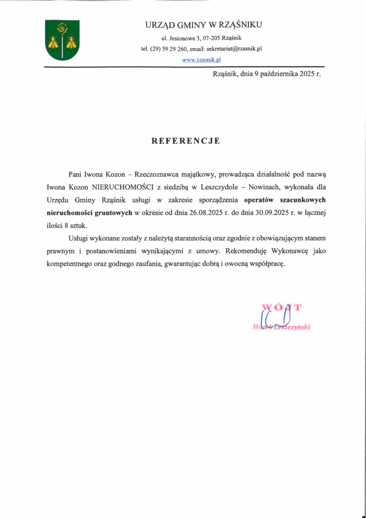 Nasze opracowania są tworzone w zgodzie z obowiązującymi przepisami prawa oraz standardami zawodowymi rzeczoznawców majątkowych. Każde zlecenie realizujemy z pełnym zaangażowaniem, rzetelnością i najwyższą starannością, kierując się zasadami etyki zawodowej.